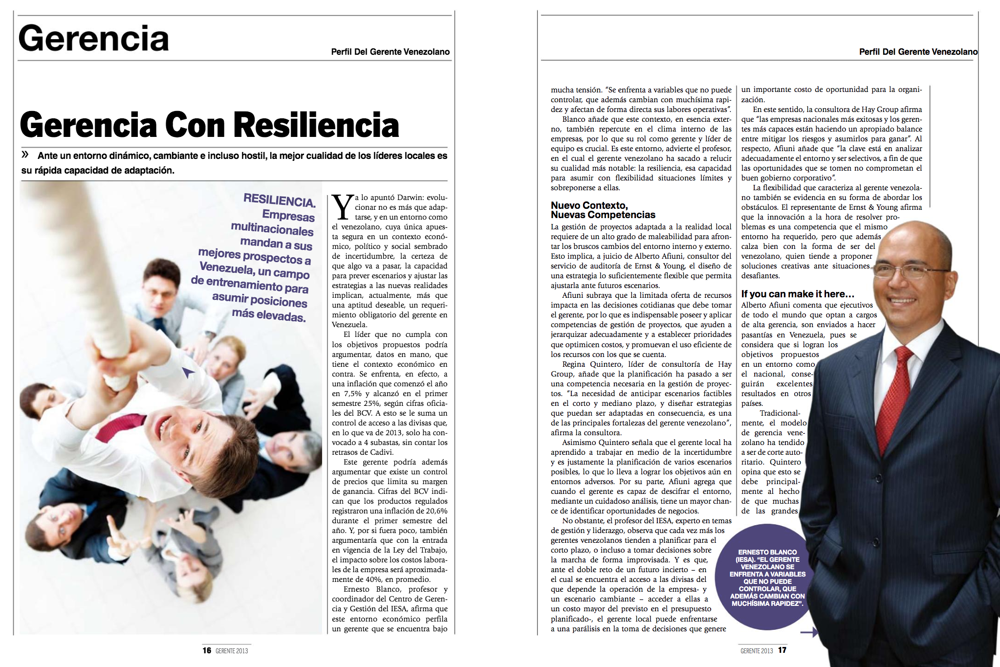 Asimismo Quintero señala que el gerente local ha aprendido a trabajar en medio de la incertidumbre, y que es justamente la planificación de varios escenarios posibles, lo que lo lleva a lograr los objetivos aún en entornos adversos. Por su parte, Afiuni agrega que cuando el gerente es capaz de descifrar el entorno mediante un cuidadoso análisis, tiene un mayor chance de identificar oportunidades de negocios.