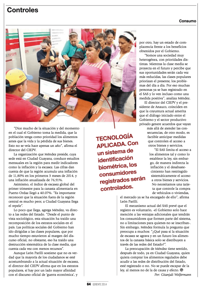 “El SAS limita el acceso a los alimentos tal y como lo establece la ley, sin embargo, de manera indirecta la inflación y el desabastecimiento han restringido sistemáticamente el acceso a otros bienes y servicios. No necesitamos una tarjeta que controle la compra de vehículos o viviendas, el mercado ya se ha encargado de ello”, afirma León Parilli.