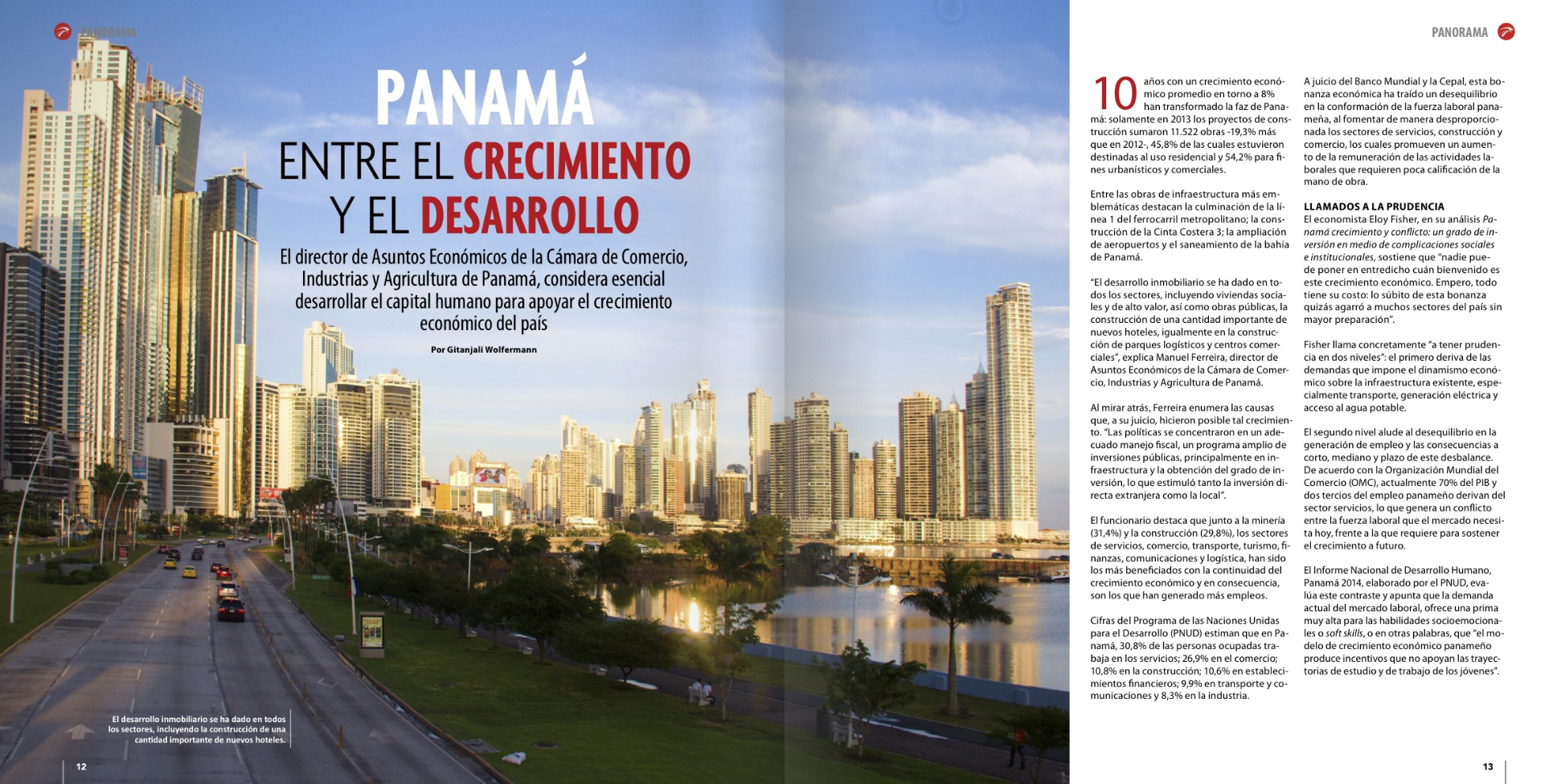 El director de Asuntos Económicos de la Cámara de Comercio, Industrias y Agricultura de Panamá lo tiene claro: “El tema del recurso humano es prioritario, por lo que se requiere mantener una política de transformación continua de la educación, mejorar la capacitación a nivel técnico y desarrollar una política migratoria inteligente, que nos permita obtener recursos humanos capacitados que apoyen nuestro futuro económico”.