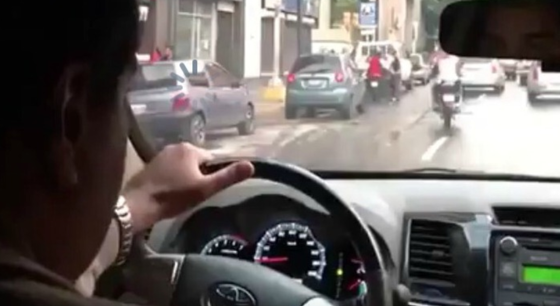 A mitad de video, a través de la ventana del copiloto se puede leer el graffiti: “Maduro asesino de estudiantes”.