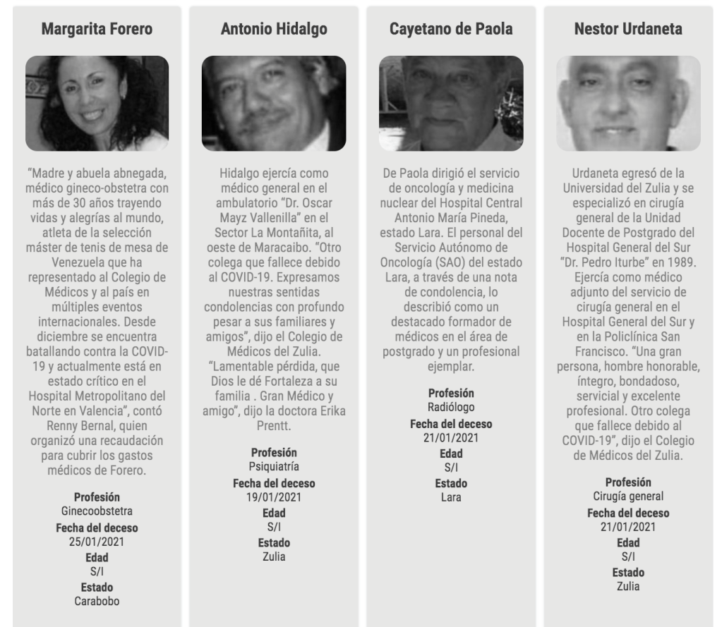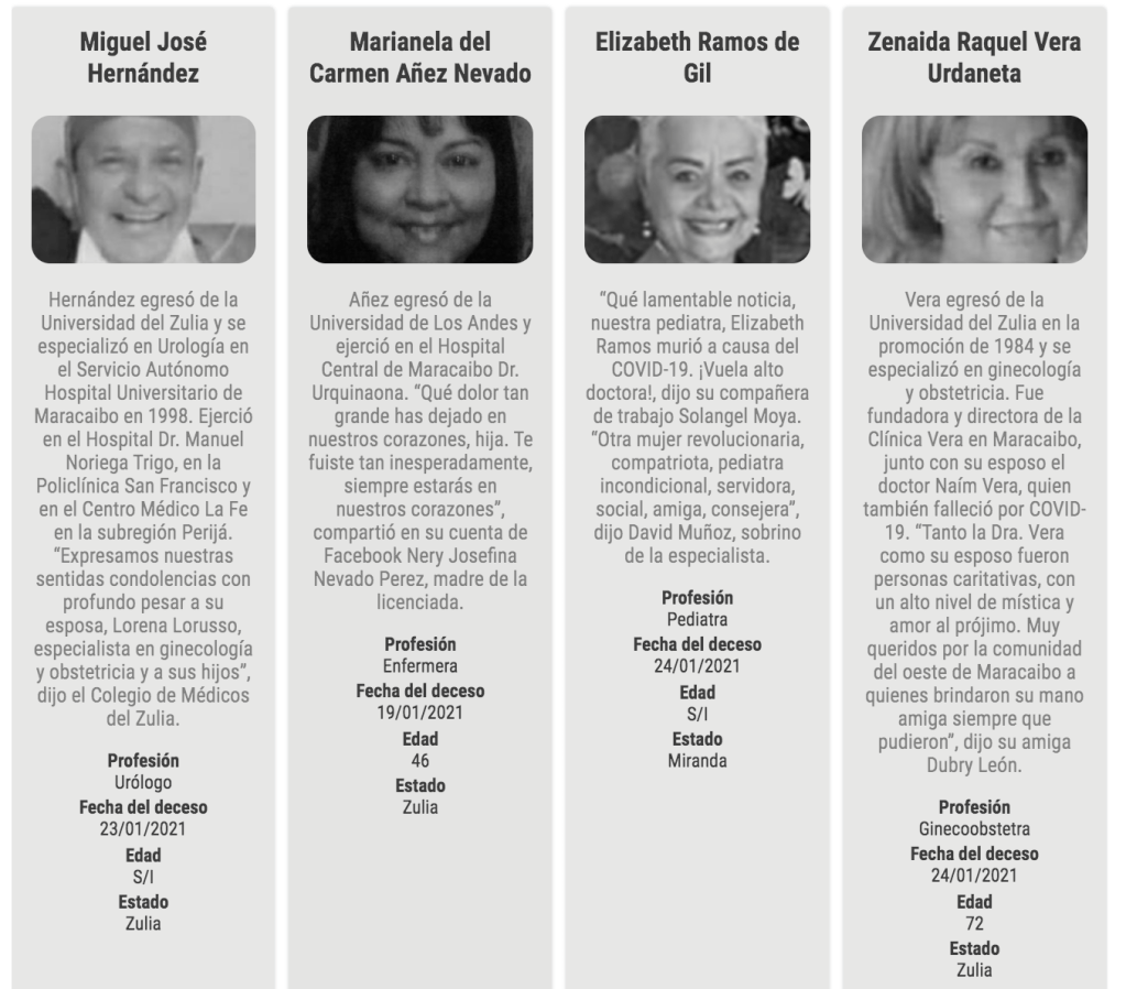 El especial contiene más de 300 biografías del personal de salud fallecido por COVID-19 en Venezuela. Puede acceder al trabajo en el portal Runrunes