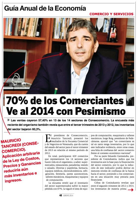Las ventas cayeron 57,40% en 13 de los 14 sectores de Consecomercio. La encuenta más reciente del organismo también revela que entre el tercer trimestre de 2013 y 2012 los inventarios bajaron 60,3%.