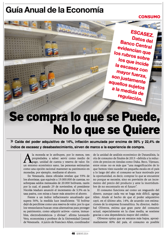 Caída del poder adquisitivo de 14%, inflación acumulada por encima de 54% y 22,4% de índice de escasez y desabastecimiento, sirven de marco a la experiencia de compra.