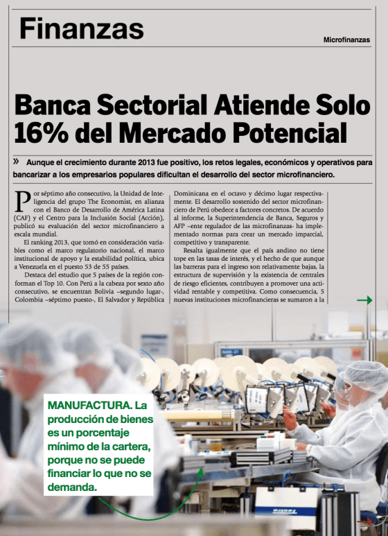 Aunque el crecimiento durante el 2013 fue positivo, los retos legales, económicos y operativos para bancarizar a los empresarios populares dificultan el desarrollo del sector.